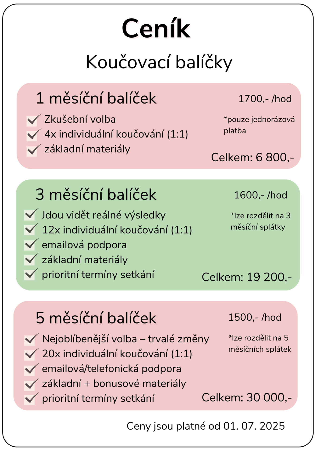 STORNO PODMÍNKY: V případě zrušení schůzky z Vaší strany 24 hod. a méně před jejím konáním, Vám bude účtován storno poplatek ve výši 100%.